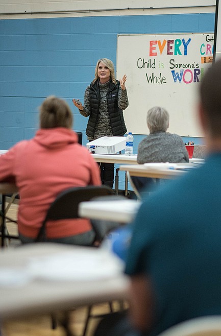 Angela Fraley, a conscious discipline instructor, taught parents how to focus on showing their children behaviors and actions in order to help young minds learn, during a parenting workshop, Tuesday at Kootenai Valley Head Start.