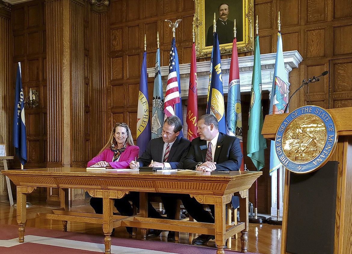 He was joined at the signing ceremony by bill sponsor Republican Rep. Ed Buttrey and Democratic Rep. Mary Caferro, who sponsored a separate bill that did not pass.