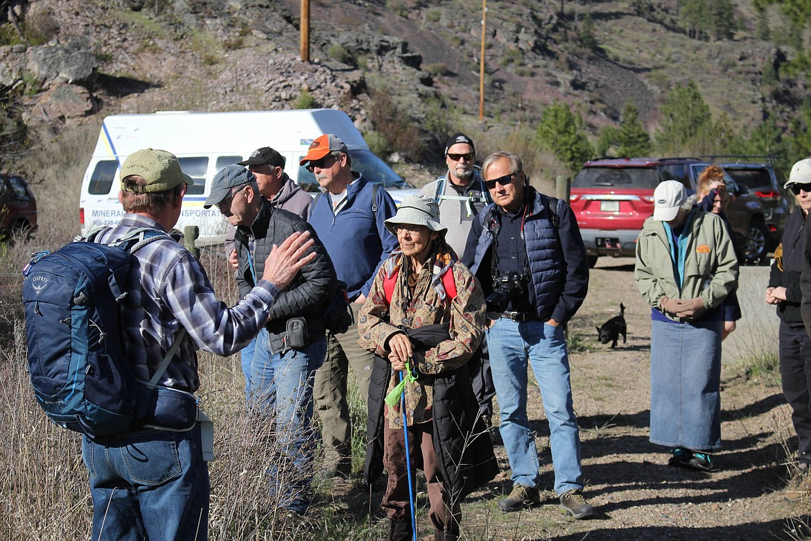 Hikers travelled through dynamite blasted gaps above the old Milwaukee Railroad to Point of Rocks on Tuesday, April 30 for the first Happy, Healthy Hikers event of the season. West of Alberton, hikers from Mineral County and Missoula gathered for some exercise, scenery and a history lesson on the Mullan Road. Mineral County Health Department, The Montana Wilderness Association, The Great Burn Study Group, Zero to Five, the U.S. Forest Service collaborate once again to offer guided hikes for residents in Mineral County and surrounding areas, free of charge.