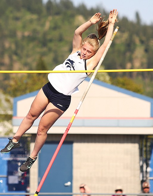 Pole vault — 1, Alex Bennet, Coeur d’Alene, 9-7. 2 (tie), Kaitlyn Moss, Lake City, Lily Hollibaugh, Coeur d’Alene, 9-7. 4, Hailey Spooner, Post Falls, 9-1.