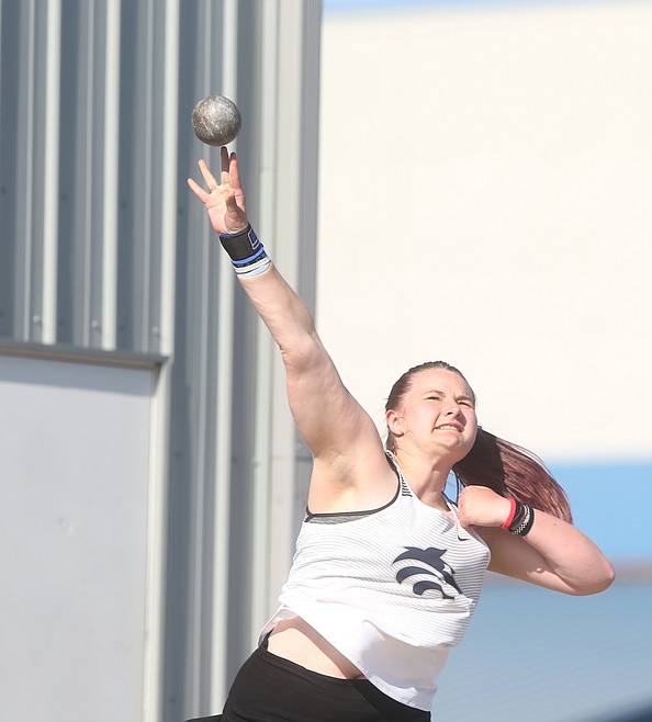 Shot put — 1, Carmen Breen, Coeur d’Alene, 37-11 3/4. 2, Labria Bowman, Lake City, 36-1 1/2. 3, Lizzy Wensley, Lake City, 35-0 3/4. 4, Kaitlyn Ward, Coeur d’Alene, 34-10.