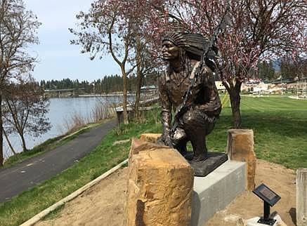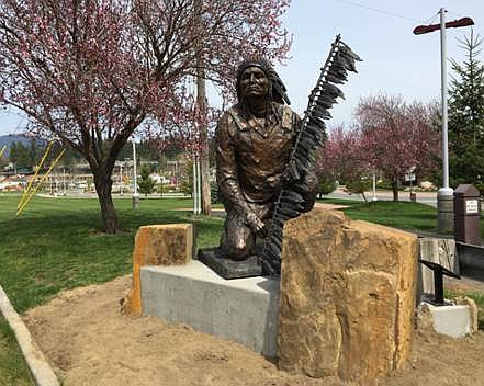 But the ground beneath the statue was giving way, causing it to lean. The Coeur d’Alene Arts Commission worked with the Coeur d’Alene Tribe and artist Cheryl Metcalf to determine where and how the statue should be moved. That collaboration process began in fall 2018; the move took place in late April.