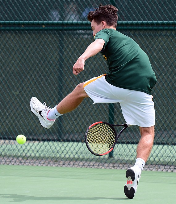 Brendan Buls, W, def. Zack Morrison, L, 6-0, 6-0; Neils Getts, CF, def. Carver Gilman, W, 6-3, 5-7,6-4; Jayce Cripe, W, def. Matt Hobbs, P, 6-1, 6-0; Joe McDonald, P, def. Ryker McElmurry, L, 6-2,6-0.