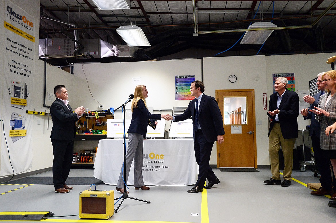 Montana Department of Commerce Director Tara Rice visited ClassOne Technology’s Evergreen plant on Wednesday for a ceremony recognizing the company as the state’s 2018 Exporter of the Year.