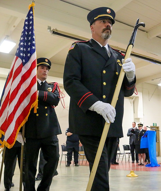 The evening began with a welcome from Boundary County Chaplain Dave Lotz, followed by an invocation by Chaplain Mark Baldwin and the Presentation of the Colors by the Boundary County Fire Service Honor Guard. Honor Guard member Cheryl Jackson led the room in the Pledge of Allegiance, then Chaplain Len Pine’s voice filled the room with the national anthem.