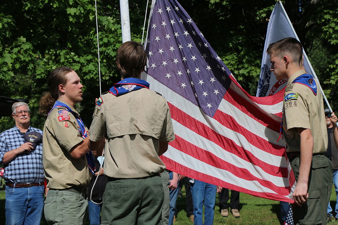 Following Stevens’ brief talk, representatives from each of the community military organizations placed small American flags at a flagpole to memorialize those who paid the ultimate sacrifice. Among those groups memorializing those who died were the Veterans of Foreign Wars and Auxiliary, American Legion and Auxiliary, Disabled American Veterans, Vietnam Veterans of America, Marine Corps League, Daughters of the American Revolution. In addition, Boy Scout Troop 308 presented colors at both Pinecrest and Lakeview cemeteries.