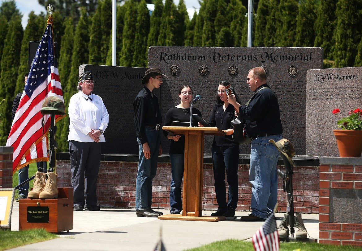 Rathdrum’s annual event drew a crowd of about 130 Monday. Survivors of those killed in action mingled with veterans near the cemetery’s Veterans of Foreign Wars military memorial. The event, sponsored by the city of Rathdrum, American Legion Post 154 and Northwest Guardian Riders, drew spectators from as far as Boise, Enumclaw, Wash., and Chicago.