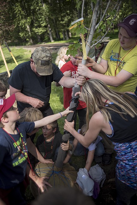 Students from Troy’s after school program helped plant a tree at the Troy Museum for a late celebration of Arbor Day, May 23.