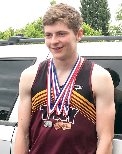 Troy senior Hunter Leighty was the only placer for the Troy High School track and field team at the State Class B Track Meet last weekend, but it was a good day for junior Ella Pierce as well.