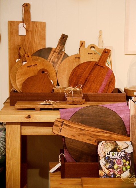 A collection of cutting boards at Bigfork Design made by the store owner, Kathleen Hennen.