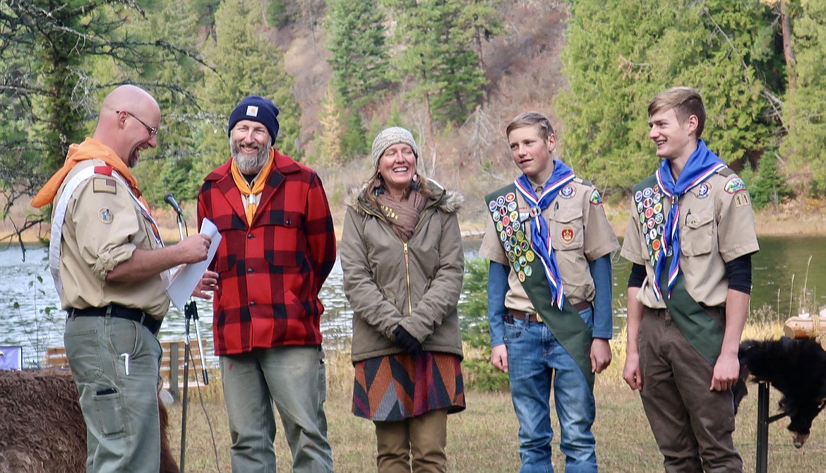 Two brothers received their blue Eagle neckerchief and Eagle Scout award, at an Oct. 26 ceremony at Camp Stidwell. Cole Dorman, second from right, and William Dorman, far right, joined the rank of Eagle Scouts which is only accomplished by about 4% of all the Boy Scouts throughout the United States. For his project, Cole Dorman built 10 picnic tables for the Bonner County Fairgrounds, with a number of them being ADA accessible. William Dormans project was to build a safety rescue kiosk, at the Camp Ouimet dock site at Camp Stidwell. The Kiwanis Club of Sandpoint Charter…