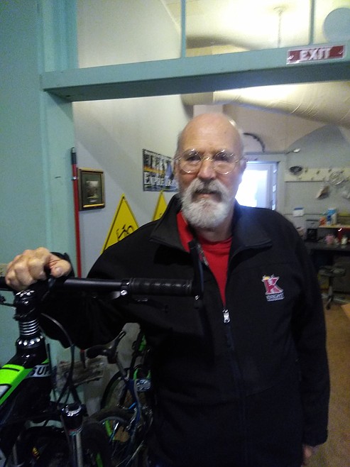 The basement below the First Baptist Church on East Wallace Avenue in Coeur d’Alene had a bite of icy air swirling inside. Tom Morgan, dressed in khaki cargo shorts, didn’t mind. He was too busy bouncing from one bicycle to the next; his kinetic energy kept him warm.