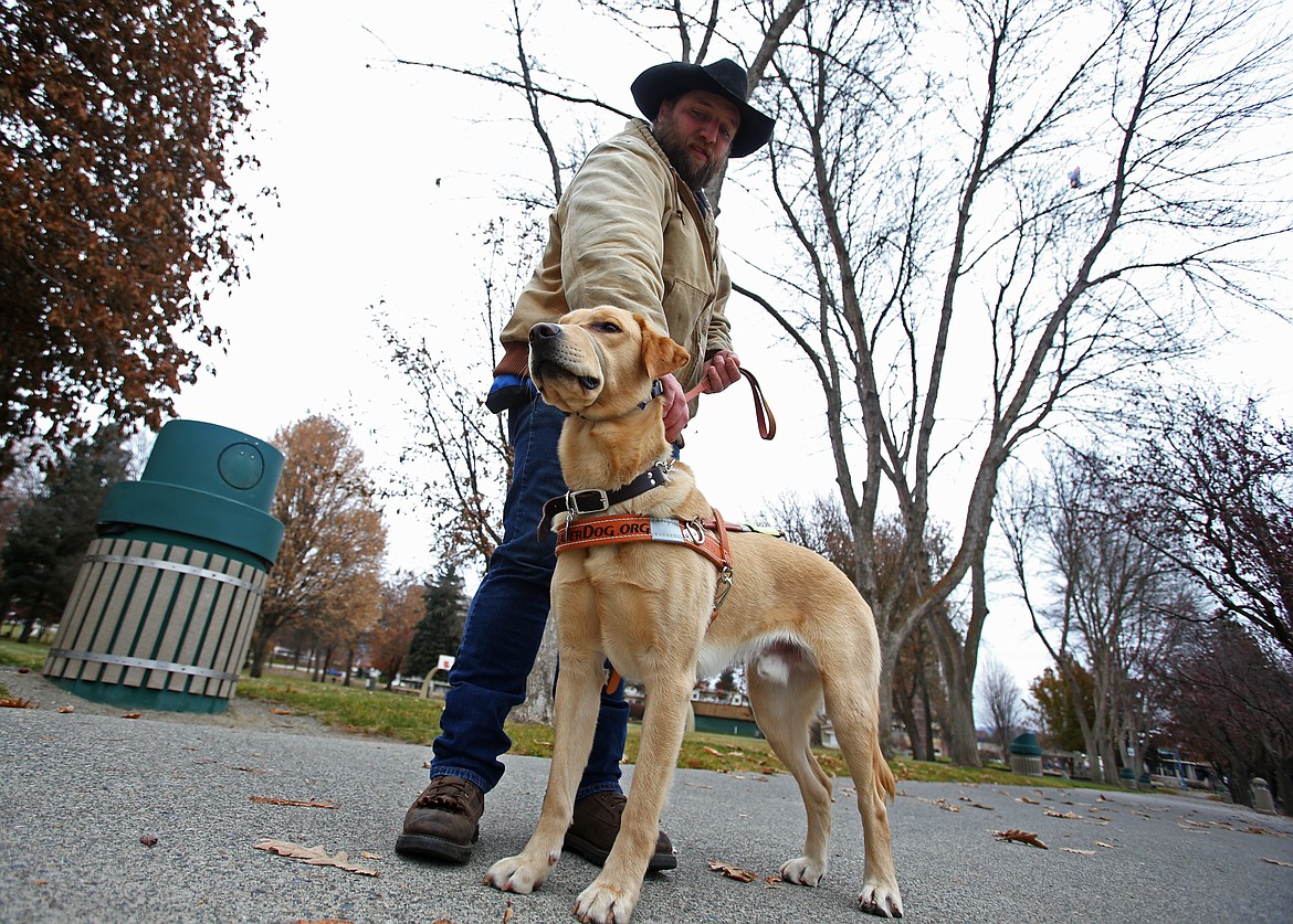 On a crisp November morning in downtown Coeur d’Alene, Ben Straughen stepped onto the street just outside the crosswalk. His companion, Pablo, immediately guided him between the white lines.