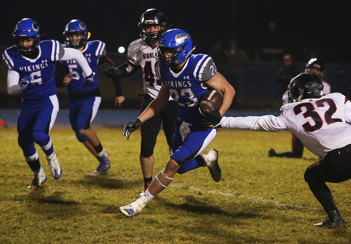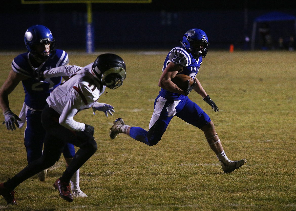 The Vikings stopped Highland of Pocatello inside the 5-yard line with just over three minutes to go, then got the first down necessary to run out the clock and finish off the Rams 21-17 in a thriller of a state 5A semifinal Friday night at Viking Field.