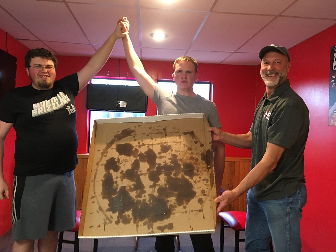 “I know a restaurant in Arkansas that has had 38 teams attempt it. They are up to $1000 prize, and nobody’s succeeded. What these boys did was impressive.” Another team in Bonners Ferry, Idaho, recently won as well. The $100 each is still available for all comers.