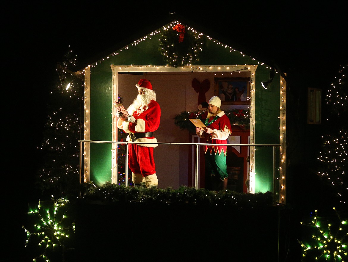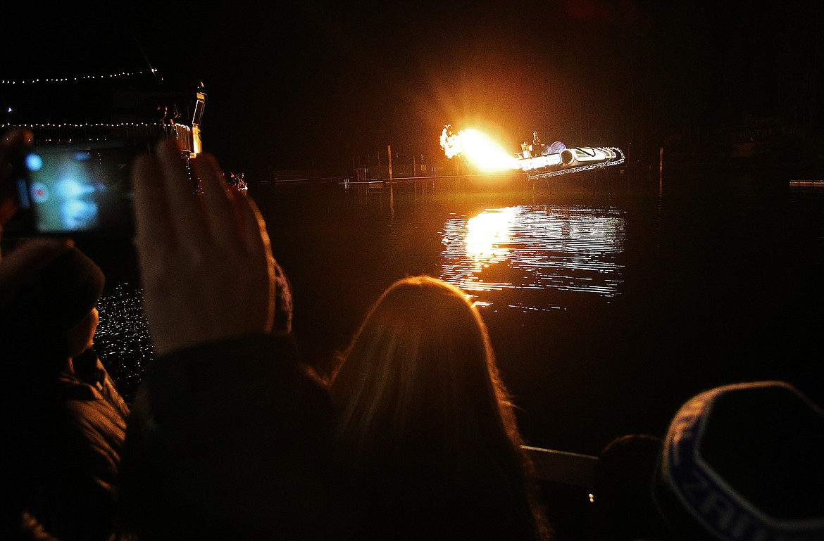 A countdown of "5-4-3-2-1!" cued the colorful fireworks to explode over Santa's house, and the lights of the North Pole began to twinkle on the waters of Lake Coeur d'Alene.