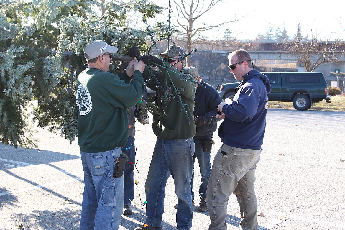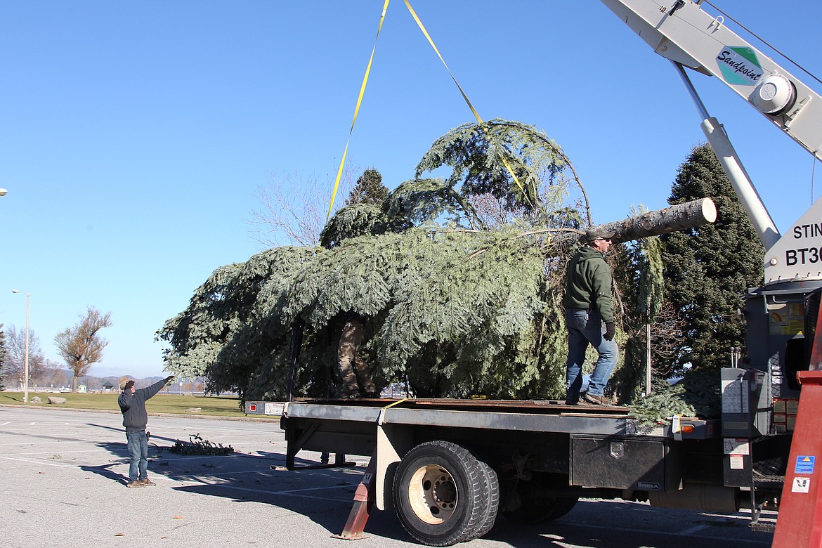 SANDPOINT — A city Parks & Recreation crew tipped into place a grand fir at Jeff Jones Town Square on Thursday.