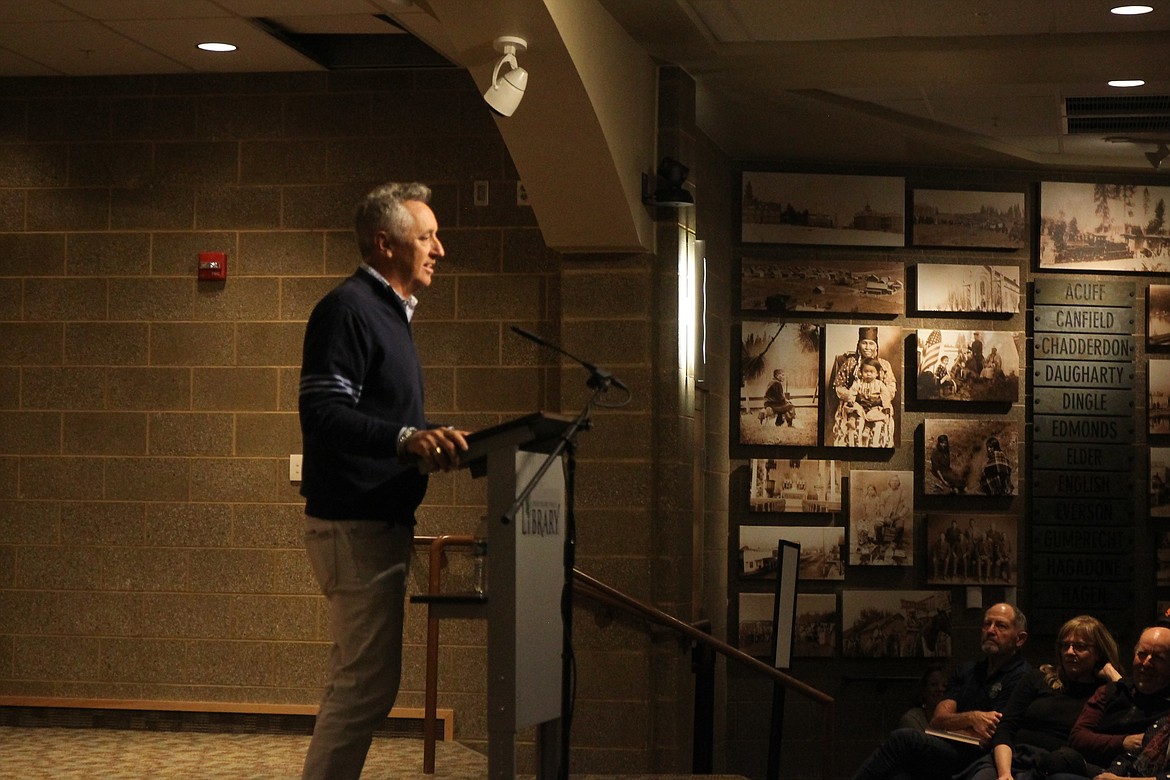 The crowd of roughly 300 — some traveling from as far as Missoula, Boise and Penticton to listen to Reilly — got a bonus opening act, as library director Bette Ammon spent the first five minutes of the event playing Abbott to Reilly’s Costello.
