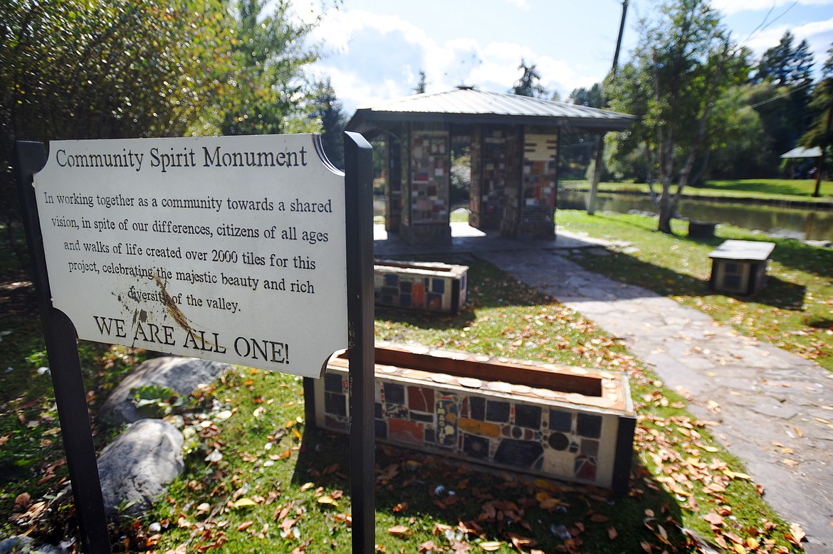 The Community Spirit Monument was built in 2008 by a collaborative effort among various local community members, including the nonprofit Love Lives Here. The monument is a gazebo decorated with 2,000 tiles made by local residents.