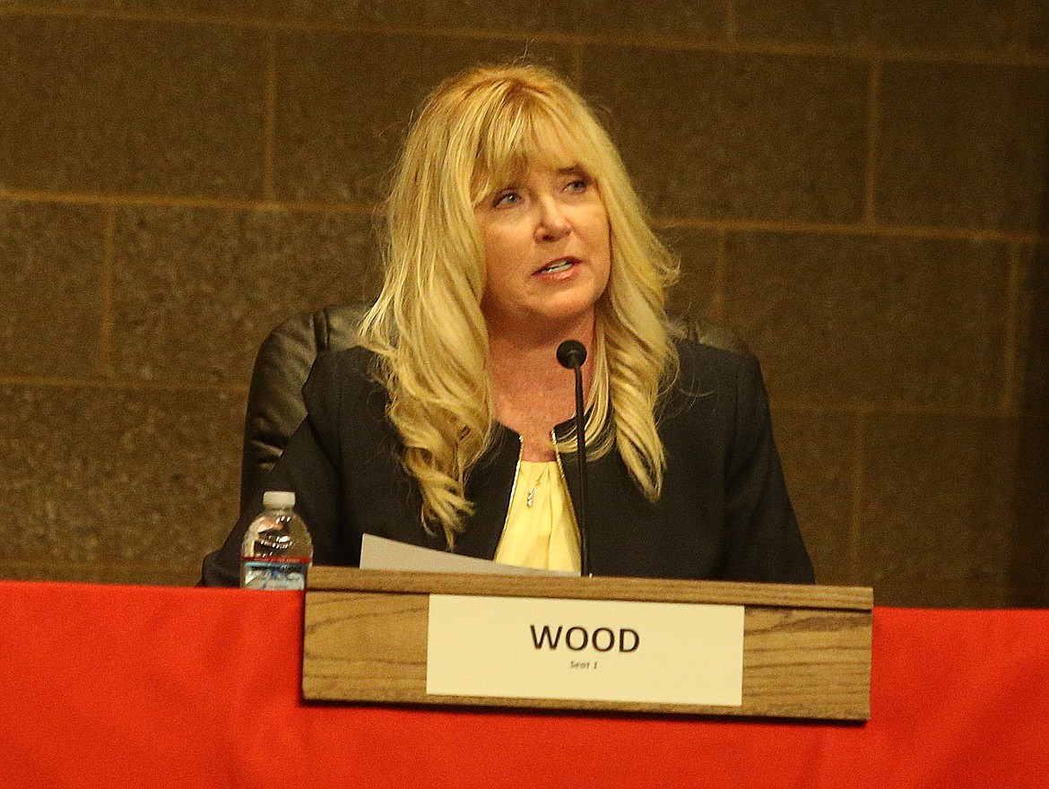 The two candidates immediately distinguished themselves through their backgrounds as they vie for the retiring Ron Edinger’s seat. Wood began by highlighting her decades of public service.