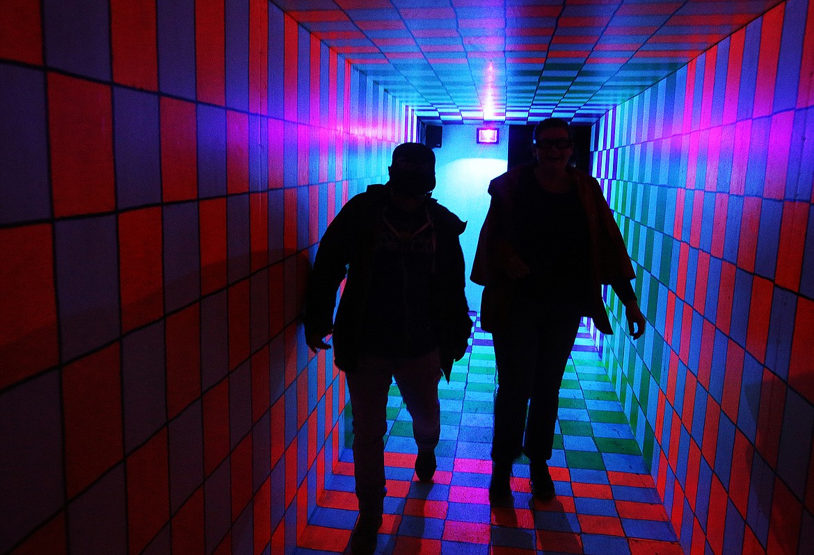The couple were some of the first to go through this year’s new attraction, Dr. Delirium’s 3-D Rock House, which is at the edge of Coaster Alley. Heavy metal can be heard blasting from the disorienting 3-D funhouse long before visitors get to the entrance.