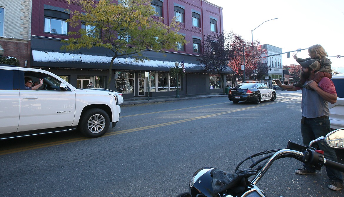 Nancy and John smiled as they waved at the small crowds that braved the cold. Their son Jeff was among the spectators.