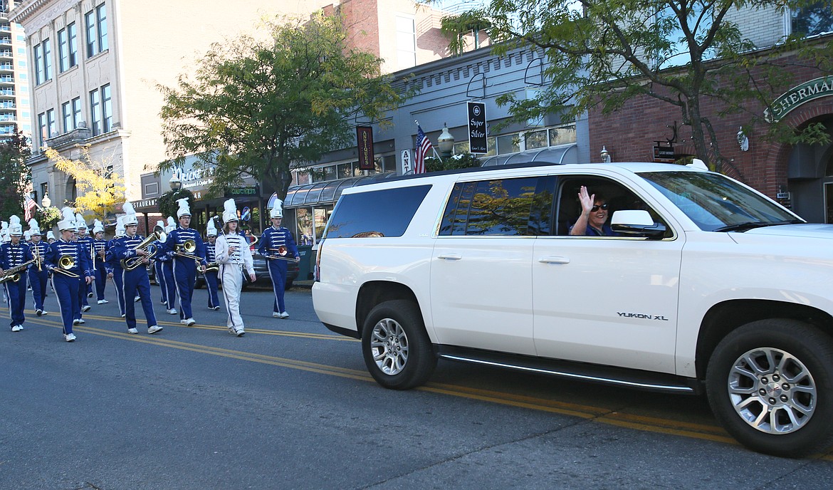 Grand Marshal Nancy Runge waved to those who stood in sunny spots on curbs and sidewalks Thursday afternoon as she and her husband, John, rolled west on Sherman Avenue. The music of the marching band played loud and clear as the CHS Homecoming Parade filled the streets with blue and white Viking pride.