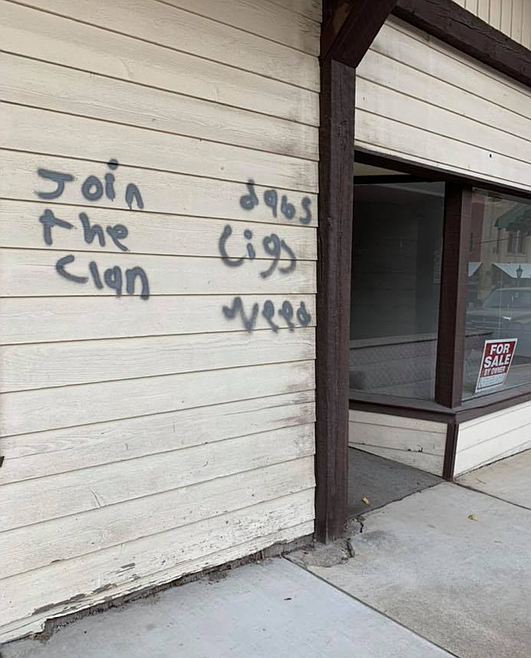 The second incident occurred on early Monday morning as several buildings in the uptown Kellogg area were spray painted with various words and phrases such as, “join the clan” and “dabs, cigs, weed” among others.