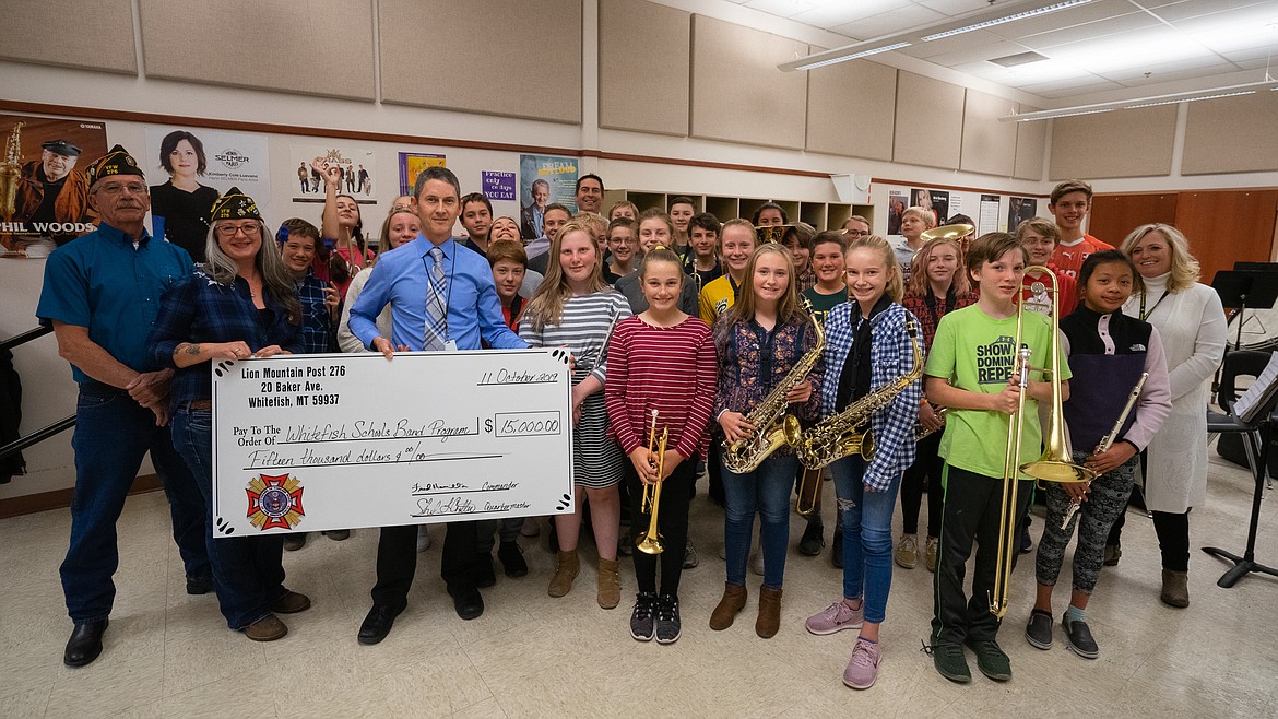 The Whitefish Middle School band got a big boost from the Lion Mountain VFW 276, who recently made a donation of $15,000 to the program.