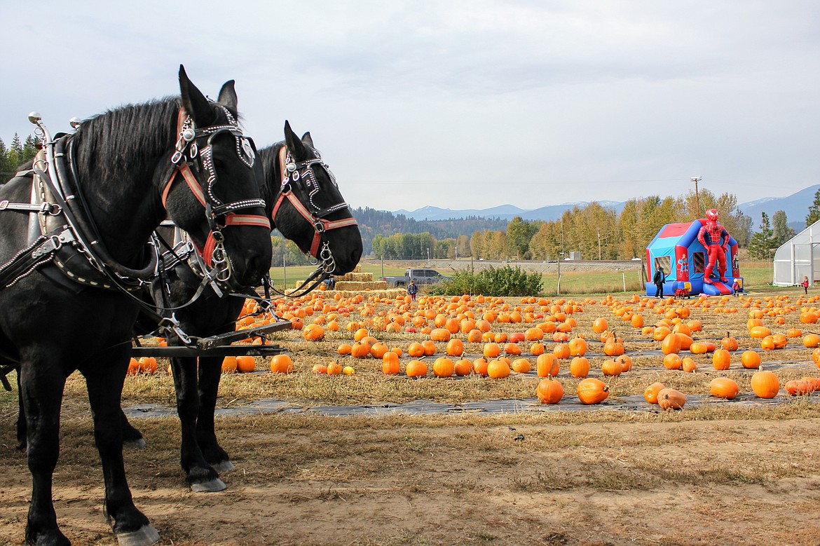 Hay rides with Paula Sandelin’s Stardust Ranch Percherons, a bouncy house, yummy treats for sale, and food items from the Compass Grill were enjoyed by visitors who came out to have some fall fun and choose a pumpkin from the patch.