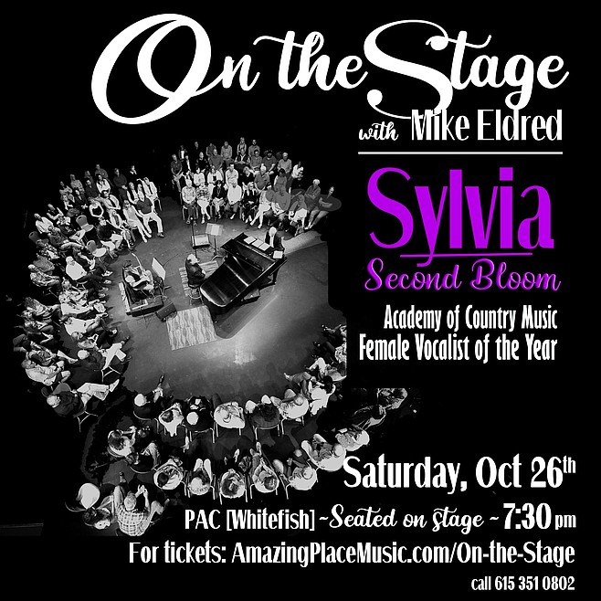Mike Eldred closes his “On the Stage” 2019 season with an intimate concert at 7:30 p.m. Saturday, Oct. 26, featuring Academy of Country Music Female Vocalist of the Year and platinum-selling recording artist Sylvia. General admission tickets for the show at the Whitefish Performing Arts Center are $48, on sale now at www.amazingplacemusic.com/on-the-stage or by calling 406-471-0851.