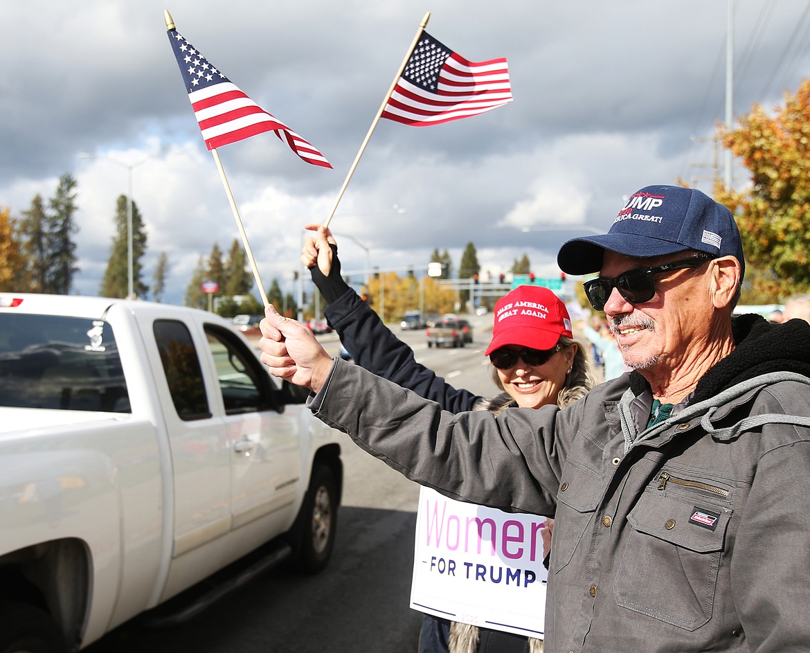 Fueled by a steady stream of honking cars and unfazed by the occasional jeer, the group proclaimed their devotion to President Donald J. Trump along the western gateway to Coeur d’Alene.
