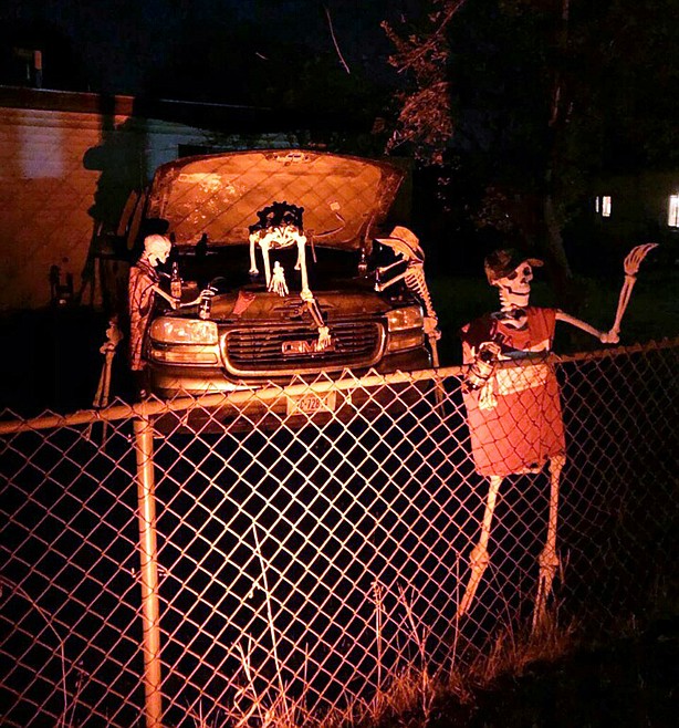 “We’ve got enough ideas and enough crap for at least a few more,” Cody said. The best part of the project for him is that there is almost no money invested in it. They spent between $40 to $50 for each one of the skeletons, but the rest of the stuff has all been items they have. Cody works as an independent contractor, so he had access to rebar and scrap pieces of wood. And gear from the families’ favorite activities have all made an appearance.