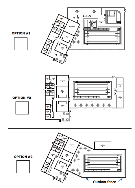 The final design, option three, is a seasonal use pool likely operating three to four months a year. It includes a four-lane lap pool and support space similar to the other two options. Lacking windows, the facility suffers constant air circulation and therefore offers no way to retain heat during the colder months.