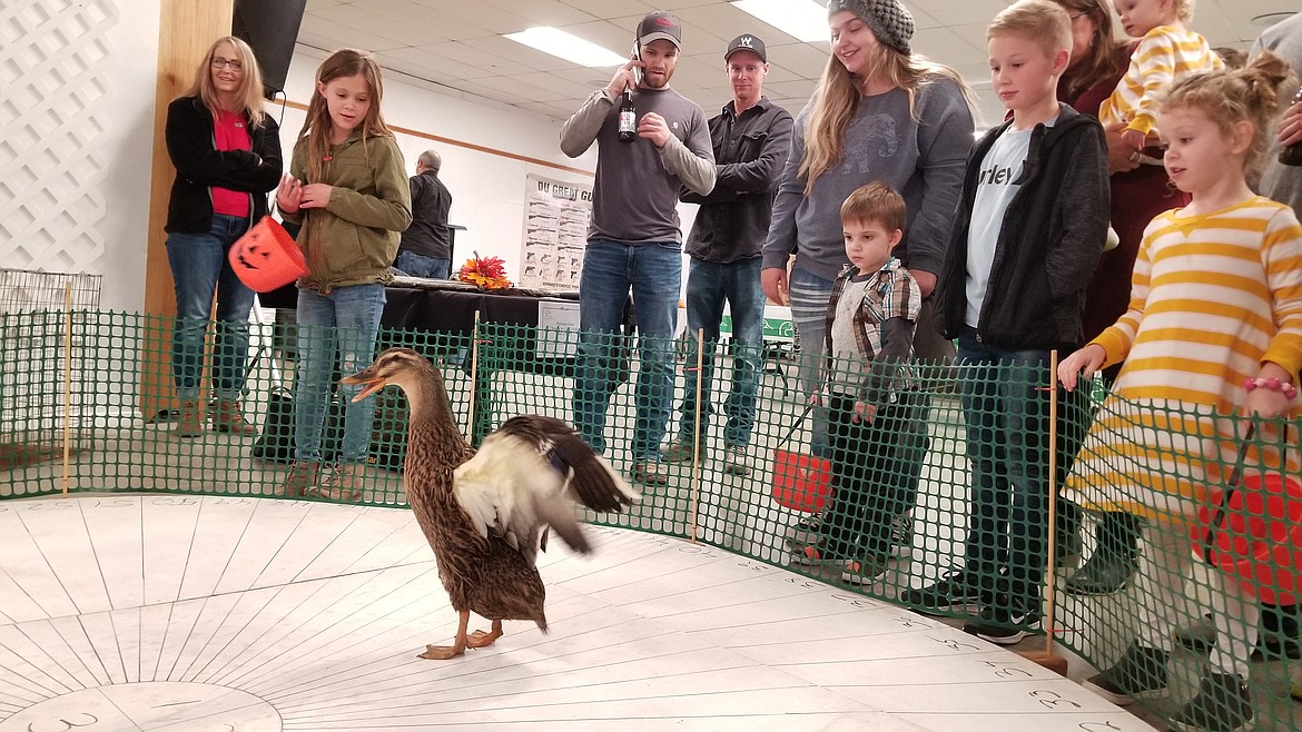 When it came time to for people to anxiously stand around — waiting for a duck to poop and hoping it was on their number — the crowd eagerly encouraged the waterfowl. Where the duck chose to poop determined the winner of a brand new gun. It did not take long for the duck to choose and Robert Yoder emerged victorious.