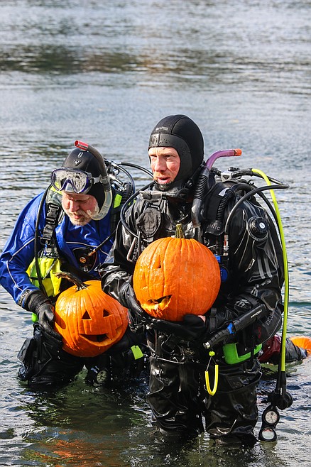 They gathered around noon on Oct. 25, at the city boat launch, geared up and took their pumpkins into the Kootenai River, then descended to carve their masterpieces. The six divers were members of the Boundary County Sheriff’s Office and Boundary County Search and Dive Team.
