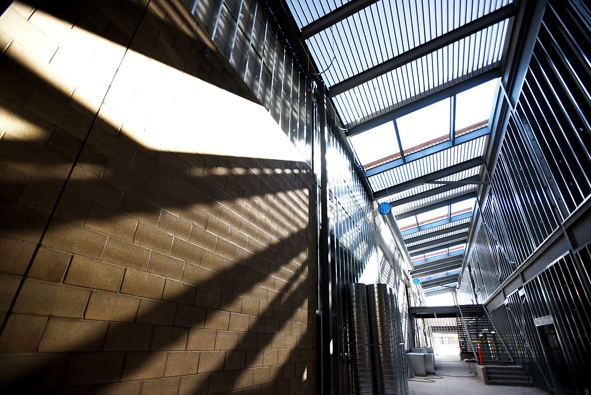 Martel Construction workers add siding to the exterior of the new Muldown Elementary on Aug. 28. The building is expected to be finished by June or July 2020 school year. (Brenda Ahearn/Daily Inter Lake)