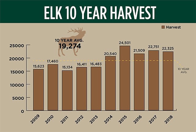 The statewide elk harvest hit 20,000 annually for the past five years. That has not happened since the all-time high harvests between 1988-96, Meints said.