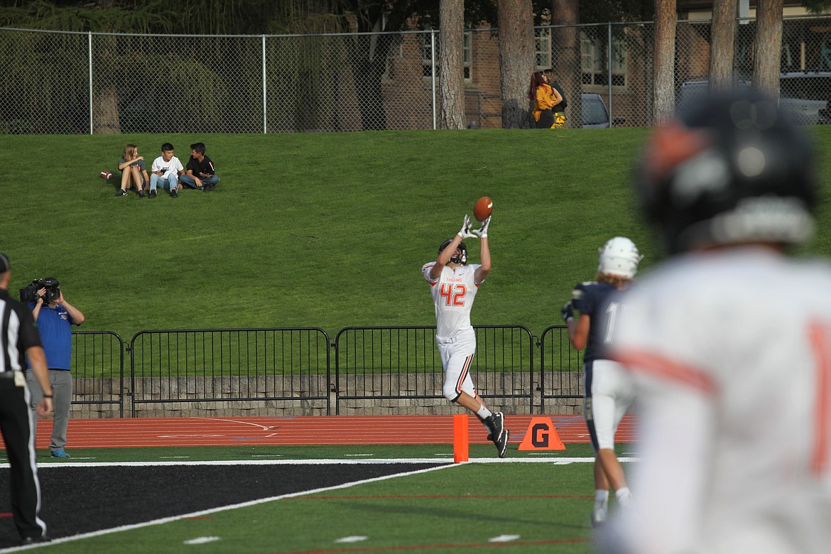 A leaping one-handed catch by Mead’s Kaven Abghari at the Post Falls 4 set up the game’s first score, a 1-yard run by Caleb Shawen.