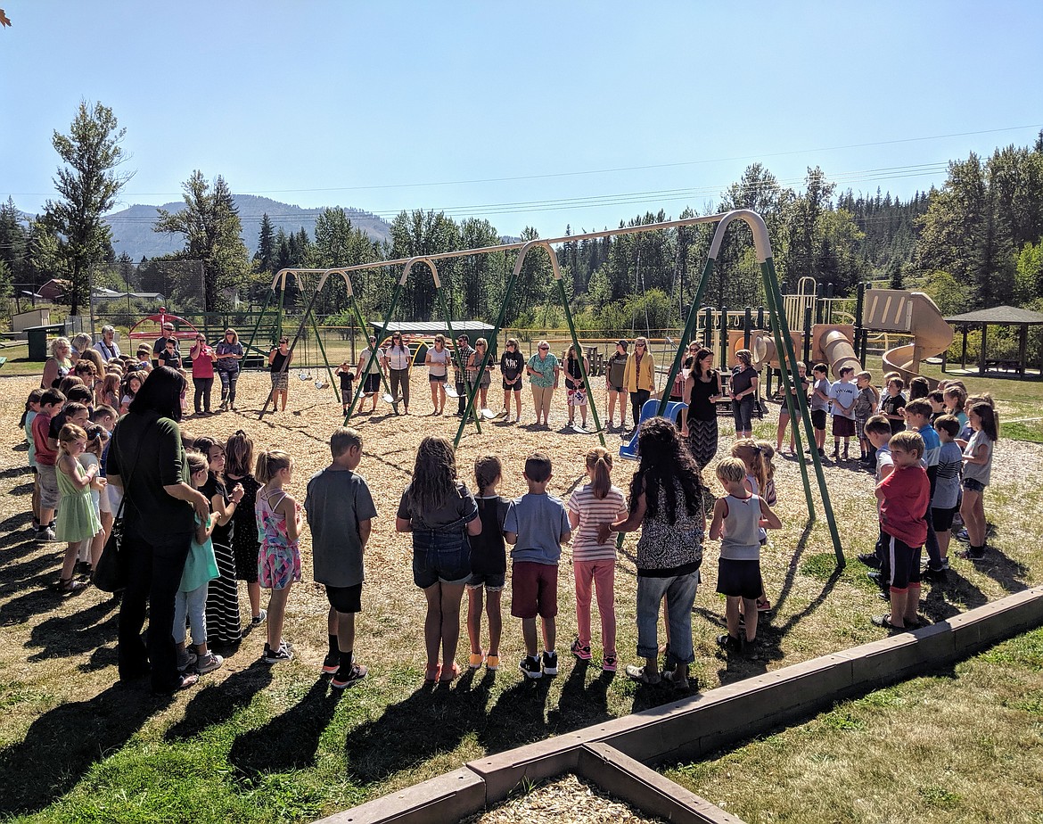 On Sept. 4, Canyon Elementary staff and students filed out of the school to form a human circle around the swing and blow bubbles to honor their former classmate. Students also carried with them handmade cards that were made out to Wyatt and his family. These cards were given to the family following the ceremony.
