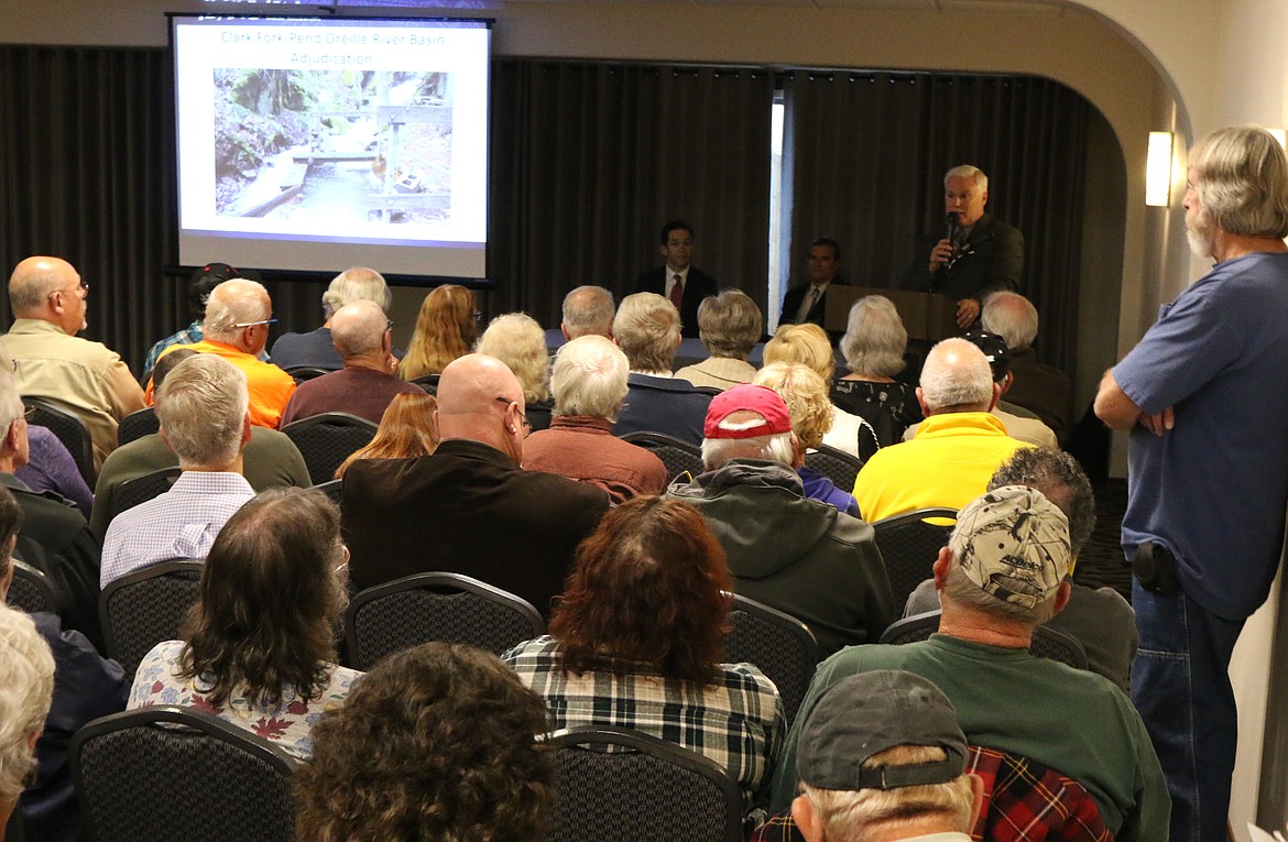 About 140 people packed into, and outside of, the hotel’s meeting room to learn about the process and ask questions, primarily regarding what water adjudication means for their individual situations. Idaho Sen. Jim Woodward and Reps. Sage Dixon and Heather Scott were in attendance as well. Before answering questions, however, Keen detailed the adjudication process and its benefits in hopes of providing answers in advance.