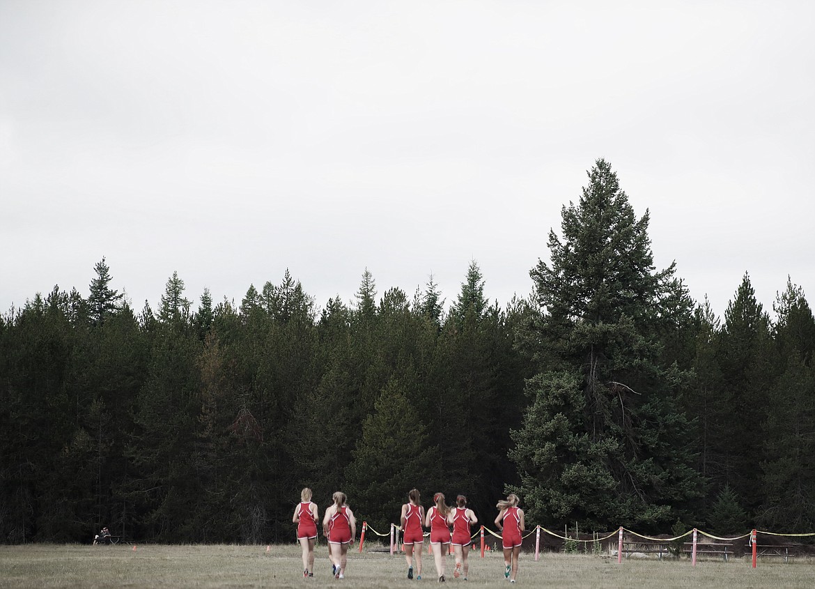The second start is cleaner. A minute later, McCall-Donnelly junior Sophie McManus and Post Falls sophomore Samantha Wood, the eventual winner, emerge from the woods at the front the pack. Behind them, Davidson jockeys for position with Oulman and Clark close behind. All three Sandpoint girls barely visible in the herd of bobbing ponytails.