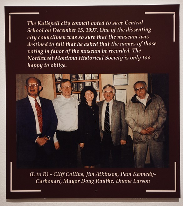 The north wall near the welcome desk at the museum has a number of items on display related to saving the school including this photograph of the five people who voted to save the building. The vote was a 5 to 4 split.(Brenda Ahearn/Daily Inter Lake)