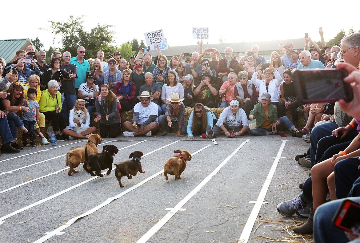 More than 20 wiener dogs — or Dachshunds as they’re officially known — duked it out for the title of Fastest Wiener in Montana at the 25th annual Great Spinnaker/Shiners Chili Cook-Off and Wiener Dog Race on Saturday in Lakeside. The races kicked off like any real sporting event, with a rendition of the national anthem, and some 300 people crowded around hay bales and on the rooftop of the Spinnaker to get a gander at this annual oddity. The crowd was enthusiastic, owing in part to the chili cook-off and beer festival that preceded the races, and in part because of the small-town charm of it all.