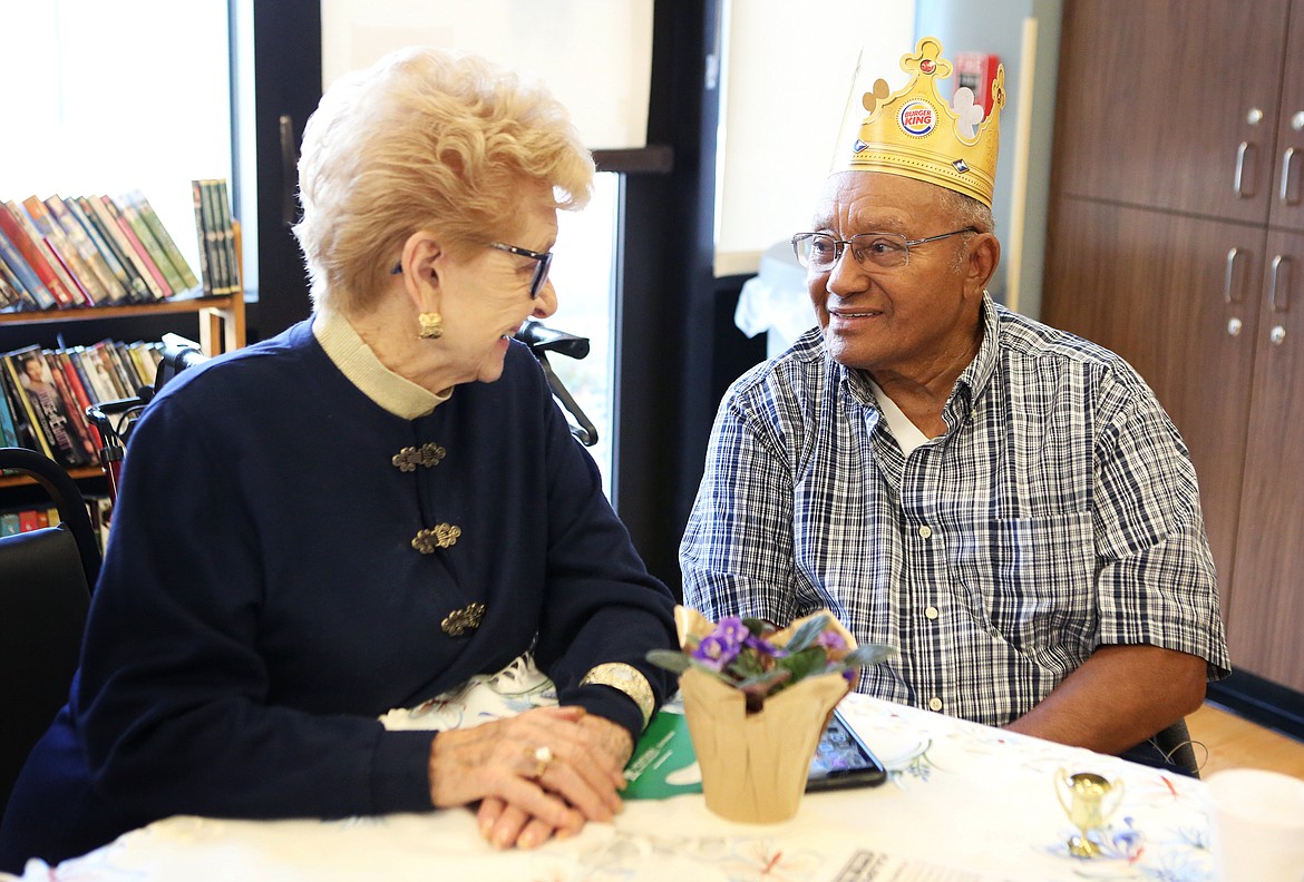 As the guests of honor walked into the Kalispell Senior Center Thursday afternoon, they were fitted with crowns — shimmery blue and green ones for the ladies, classic Burger King models for the gents.