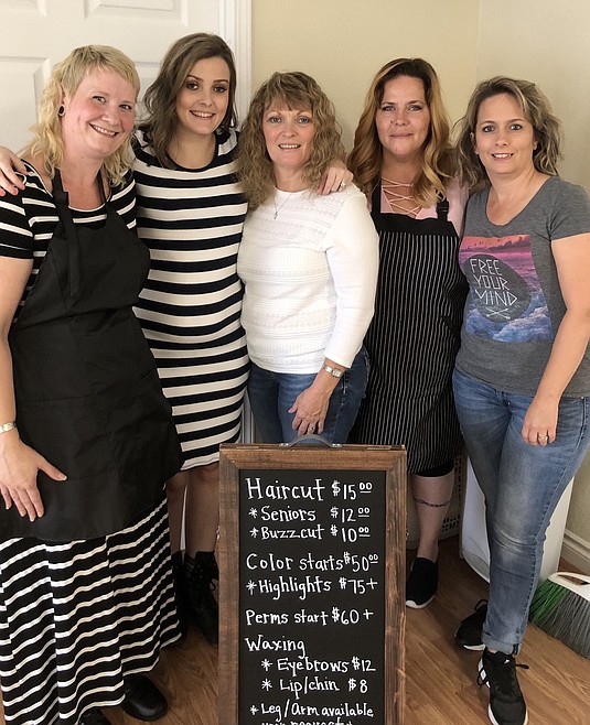 Services include haircuts, colors, perms, waxing and styling with owners Bethany Arrian, Courtney Martello, Kim Coast, Christina Baldwin and receptionist Kim Wixom.