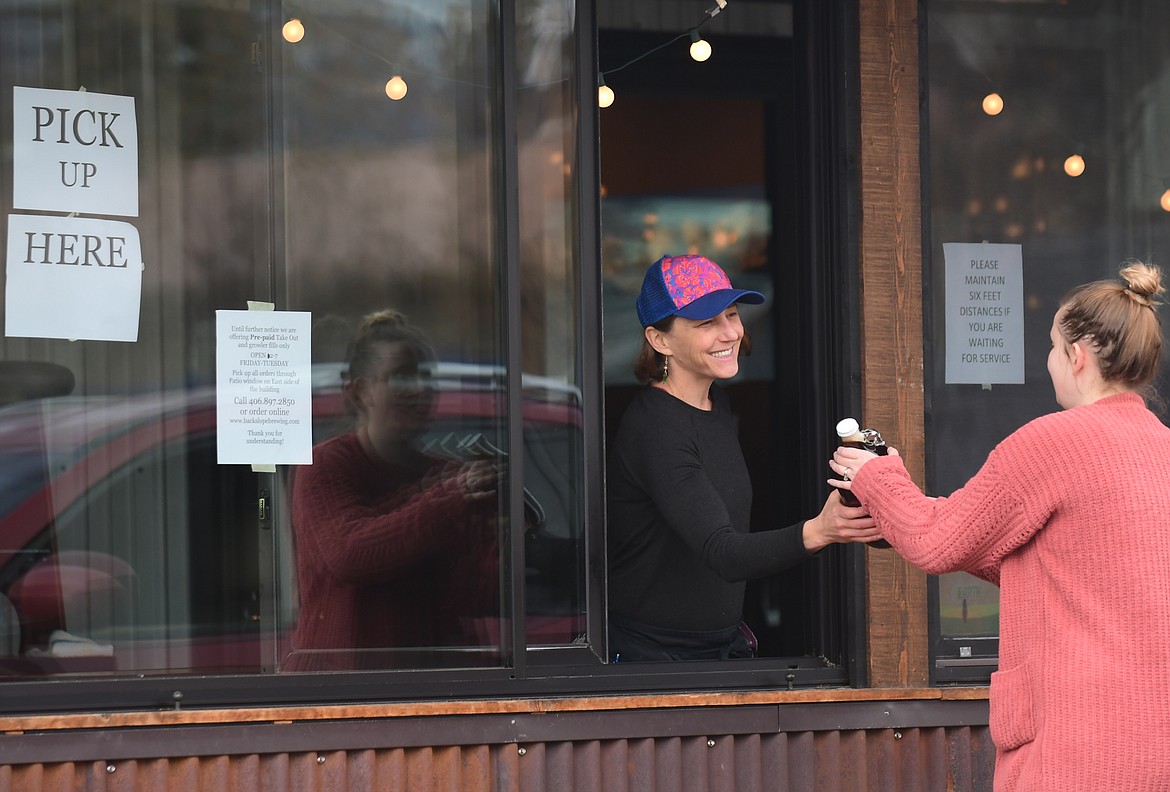 Backslope Brewery, Montana Coffee Traders and Glacier Grill and Pizza have all created pickup windows, no longer allowing customers to enter their buildings and further limiting customer-employee interaction. Vaqueros and North Fork Pizza have moved to curbside pickup only, where customers must call and indicate which vehicle to bring food out to. Those that still allow customers in their establishments to pick up takeout, like Stageline Pizza and Tien’s Place Oriental Dining try to limit it to two people at a time, staying at least six feet apart. Stageline has delineated six-foot spacing for customers and employees with red tape on the floor. The Nite Owl and Backroom bring food to customers waiting in their take away lobby.