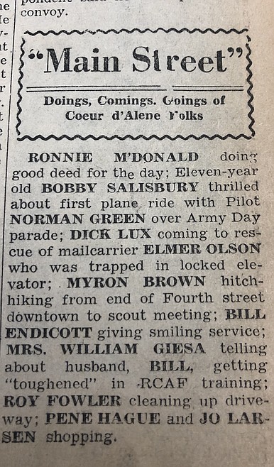 While most North Idahoans are following Gov. Brad Little’s order and staying home, we thought we’d provide a daily glimpse back nearly 80 years. This retro excursion will include an item or two from the Coeur d’Alene Press on the same date in 1942 as present time.
