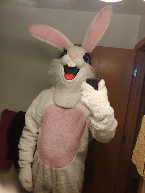 Yet, the Post Falls man did not let that memory stop him from donning a pink Easter Bunny suit, hopping in the back of his pickup, and driving around Post Falls and Coeur d’Alene for six hours waving to everyone.