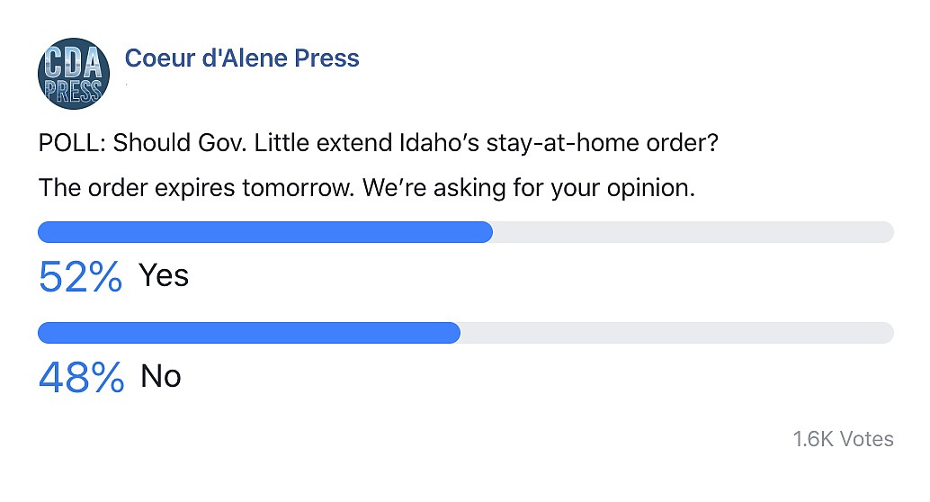 Little made the comment during a weekly AARP conference call, where he fielded questions from concerned Idahoans. One caller asked if he would extend the stay-home order, which expires tomorrow.
